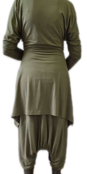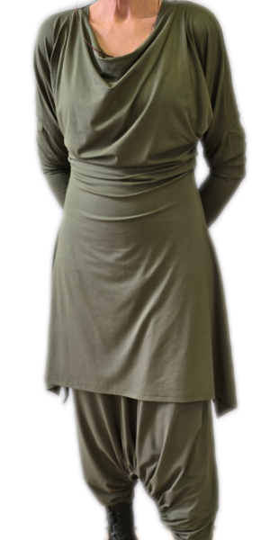 Tuniek met wijde hals en rimpels in de taille, waardoor deze niet tekent.