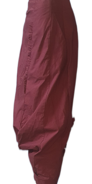 Een heerlijk zittende baggybroek, in bijna 100 % katoen in drie schitterende kleuren.